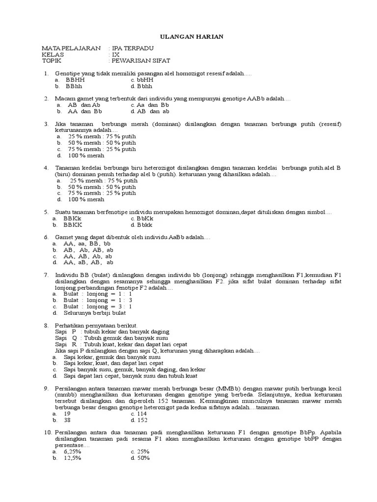 Genotipe Yang Tidak Memiliki Pasangan Alel Homozigot Resesif Adalah