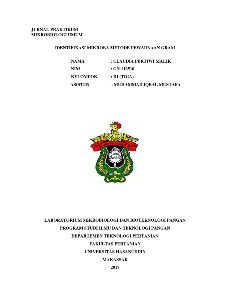Jurnal Praktikum Pewarnaan Bakteri merupakan sebuah dokumen yang berisi panduan praktikum mengenai teknik pewarnaan bakteri. Pewarnaan bakteri adalah salah satu teknik penting dalam identifikasi dan karakterisasi mikroorganisme. Jurnal ini memberikan informasi dan panduan langkah demi langkah dalam melakukan pewarnaan bakteri yang benar.