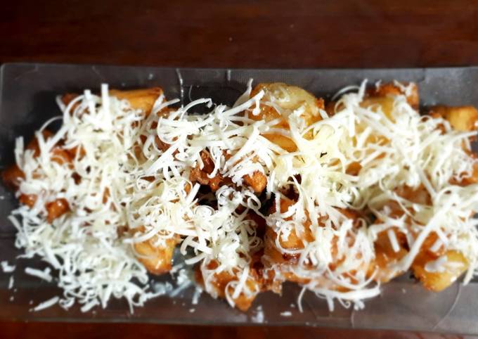 – Keju cheddar atau keju mozarella, parut kasar atau potong dadu